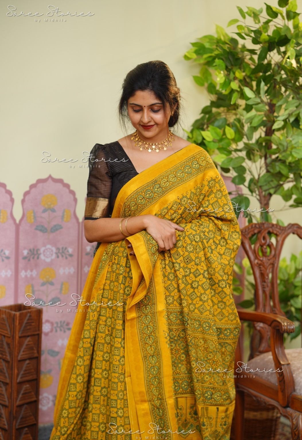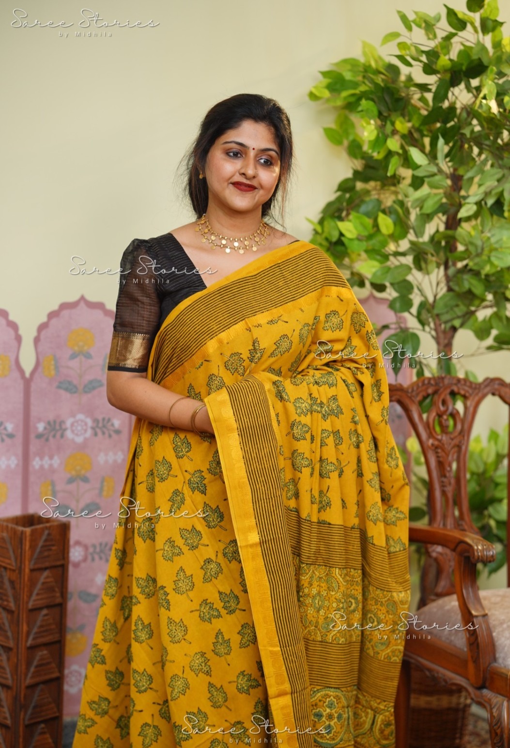 PREMIUM COTTON ZARI BORDER AJRAKH HAND BLOCK PRINT SAREE