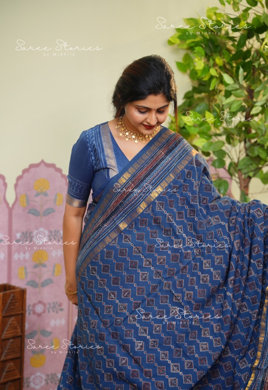 PREMIUM COTTON ZARI BORDER AJRAKH HAND BLOCK PRINT SAREE