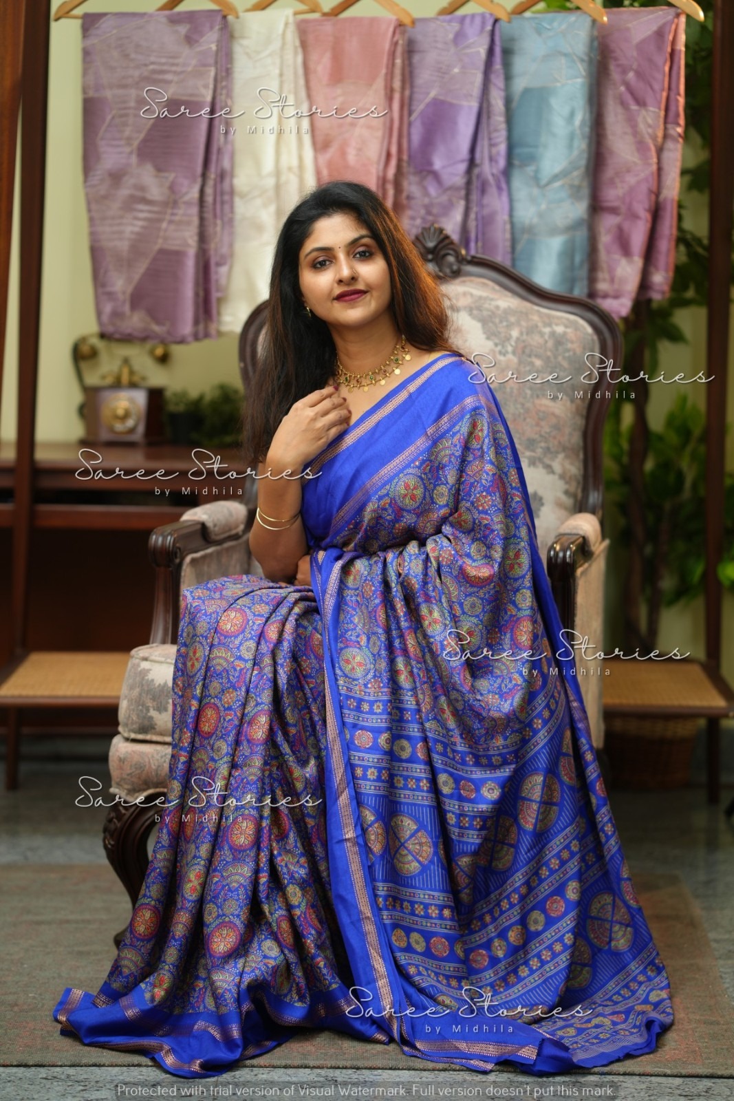 PURE SOFT TUSSER KASHMIRI PRINTED SAREE WITH RICH PALLU AND GADWAL VISCOUSE BORDER