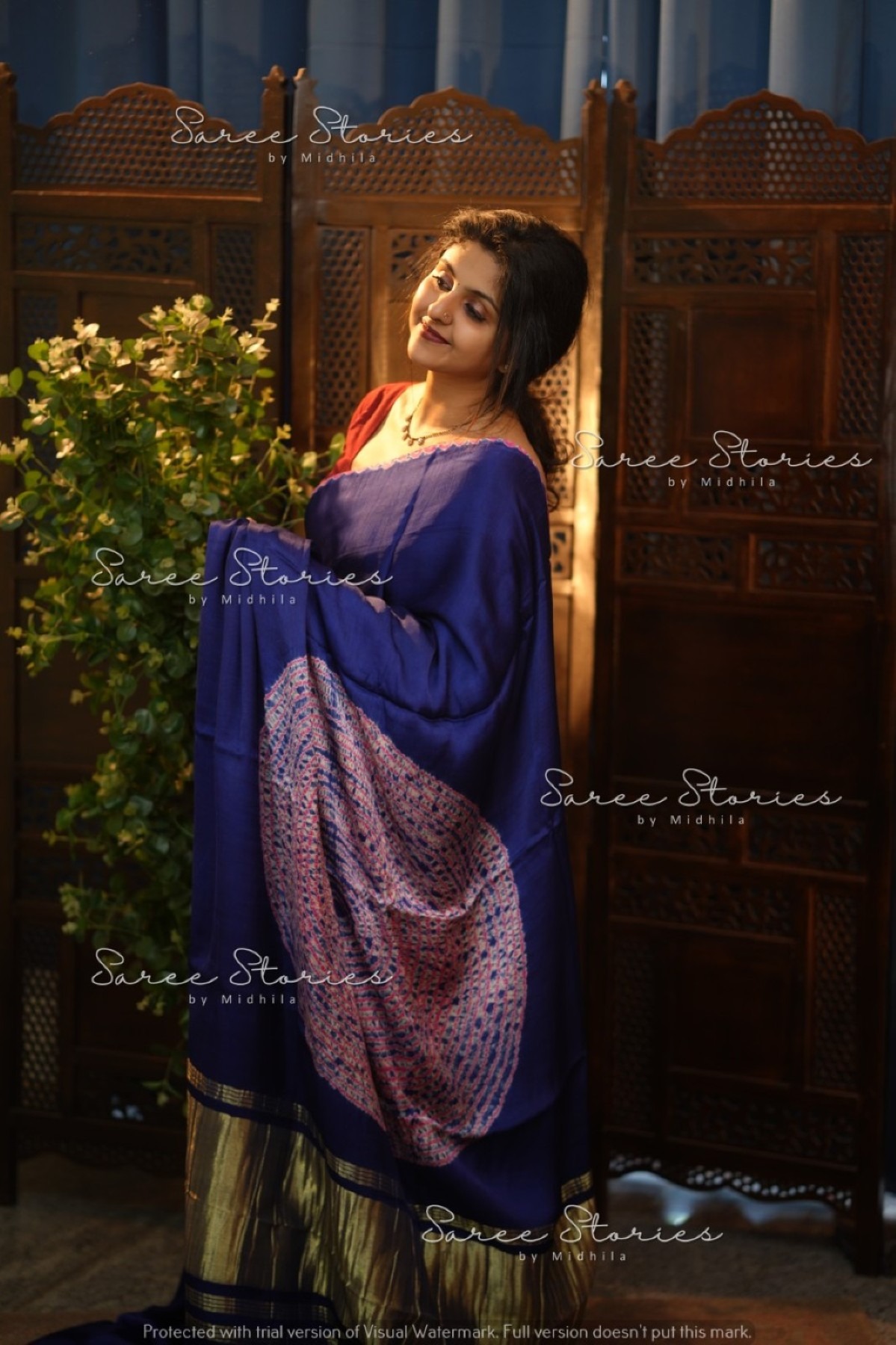 PURE MODAL SILK SHIBORI PRINT SAREE WITH...