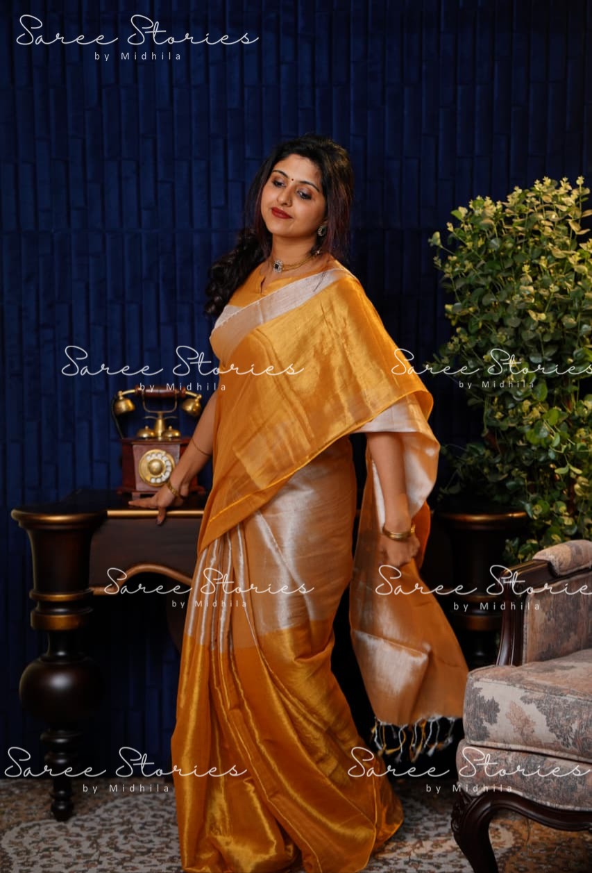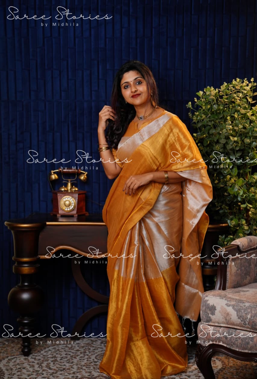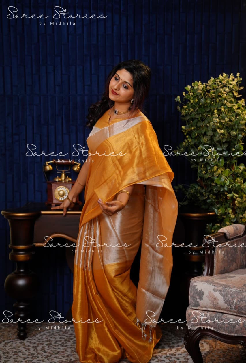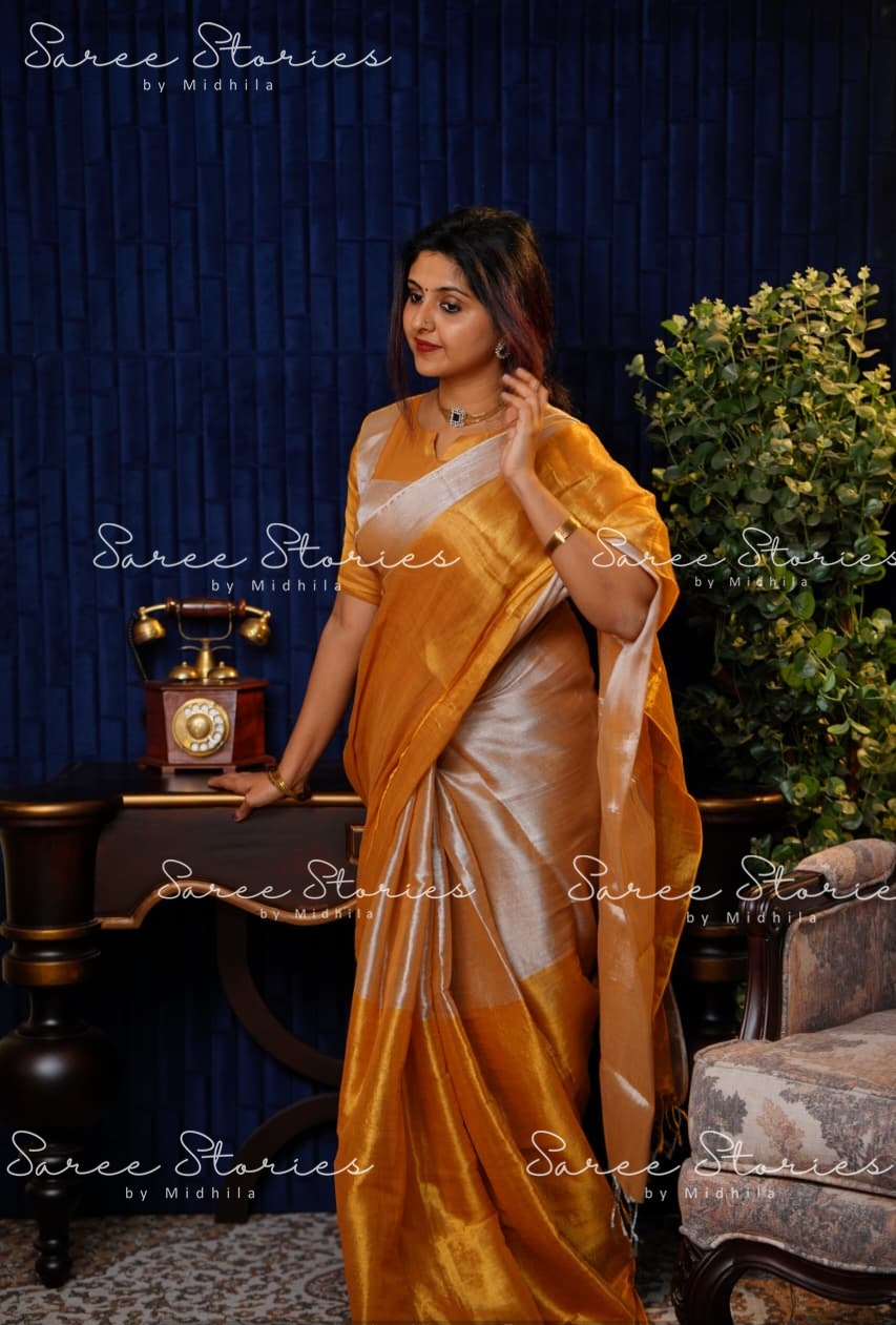 COTTON TISSUE SILK SAREE WITH RUNNING BLOUSE MATERIAL(Saree L-5.10 m,Saree W -1.10 m,Blouse-90cm )