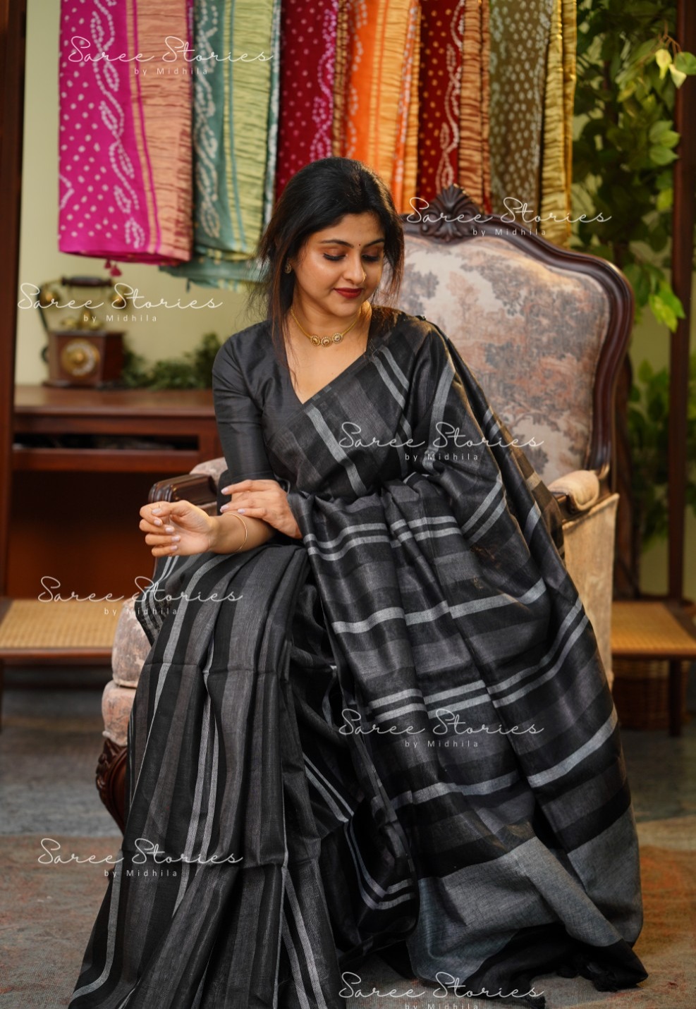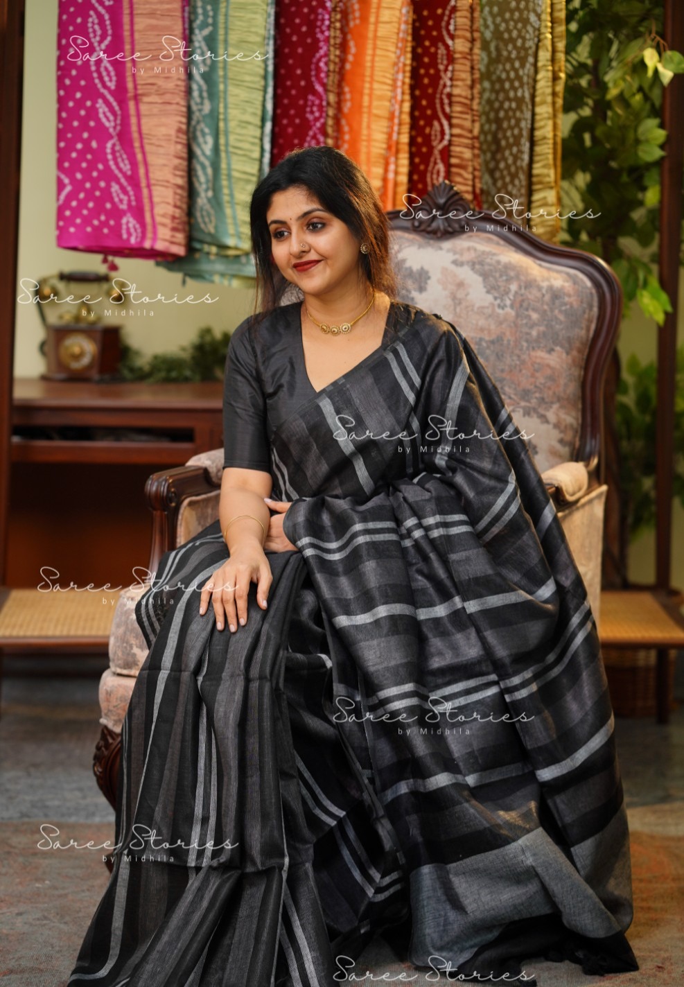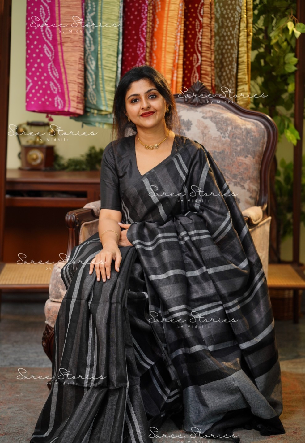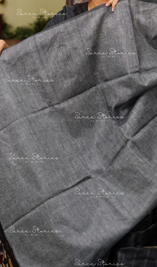 PURE LINEN BY LINEN SAREE WITH RUNNING BLOUSE MATERIAL ( Saree L -5.5m, Saree W- 1.10 m ,Blouse-90 cm )