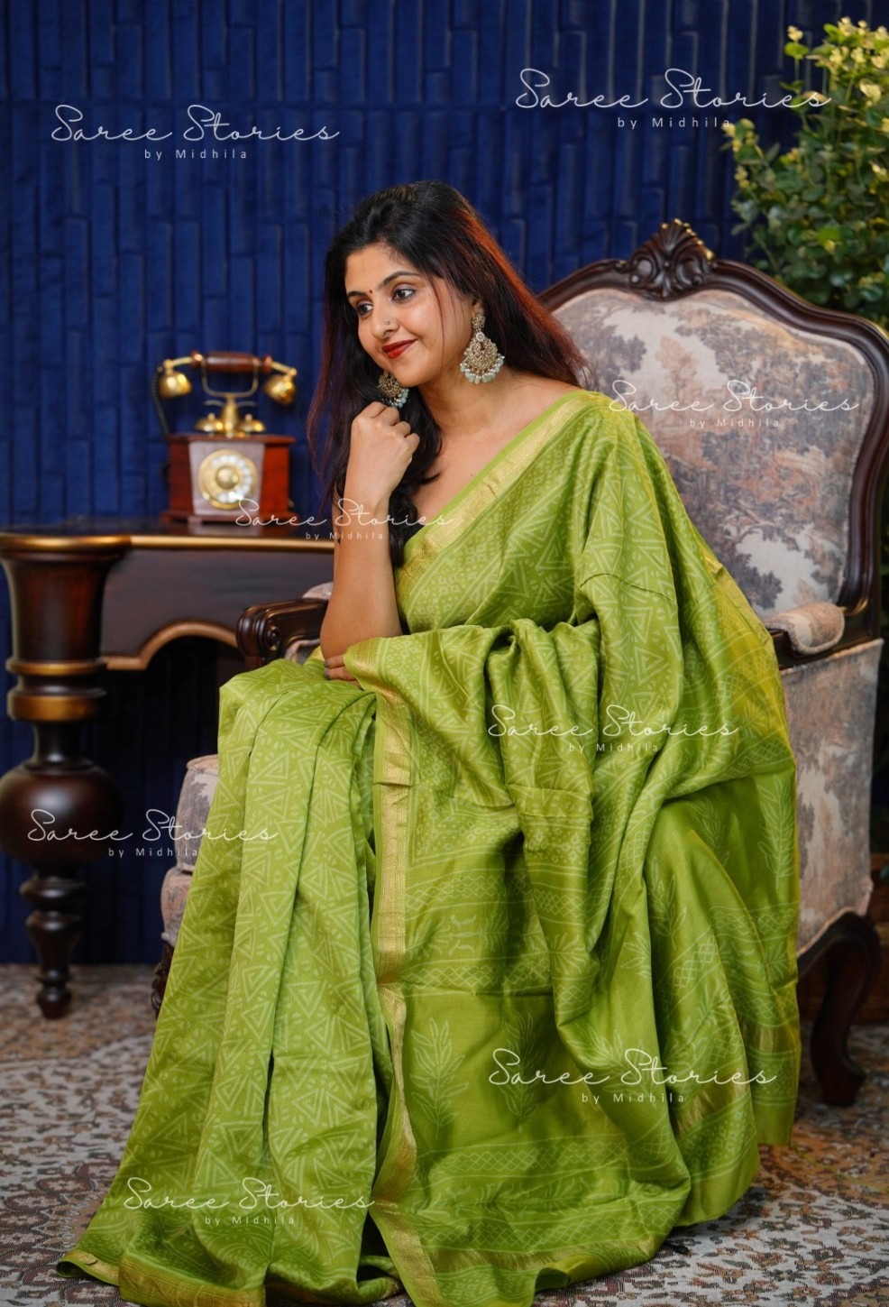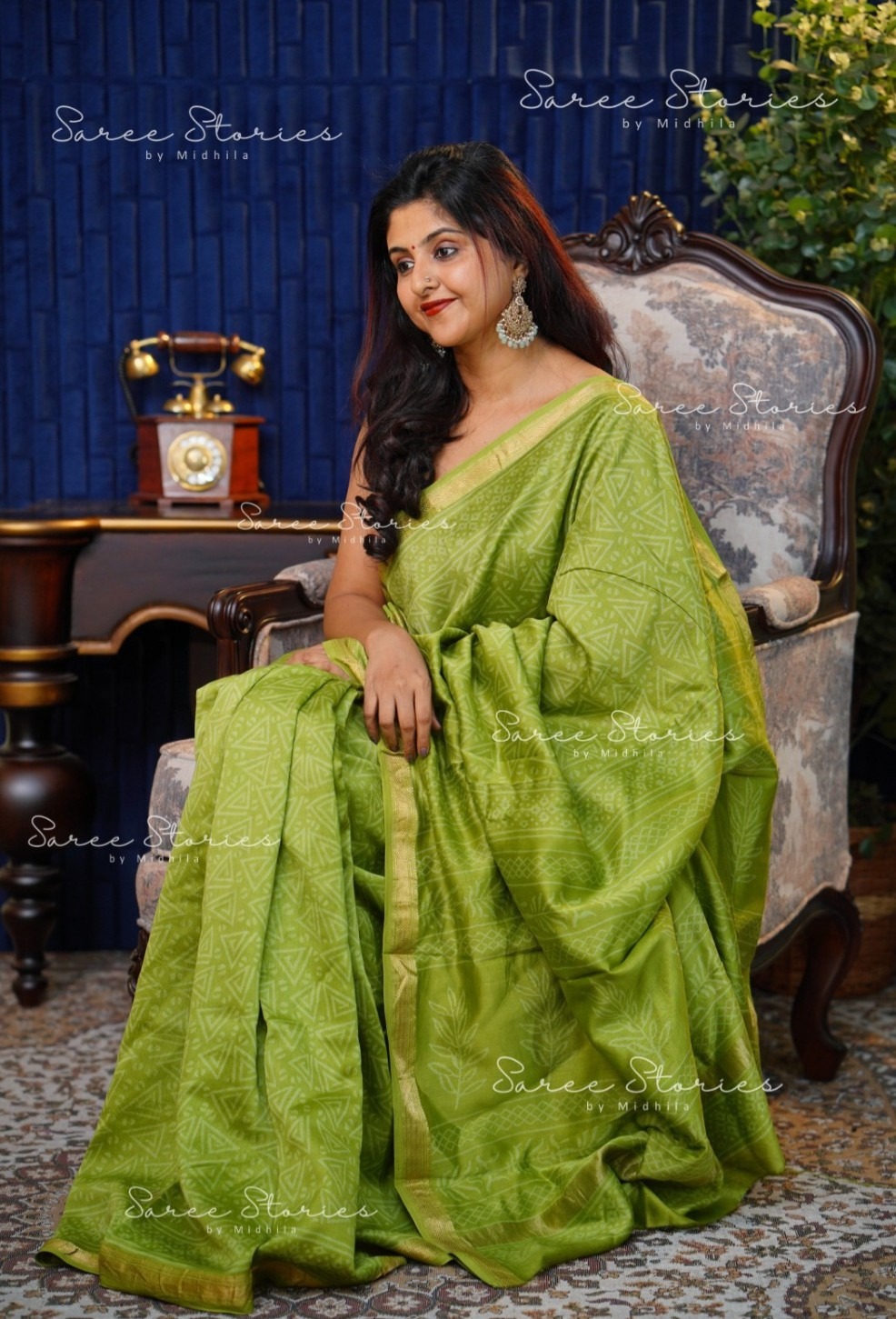 PURE MODAL SILK AJRAKH PRINTED CHECK BOR...