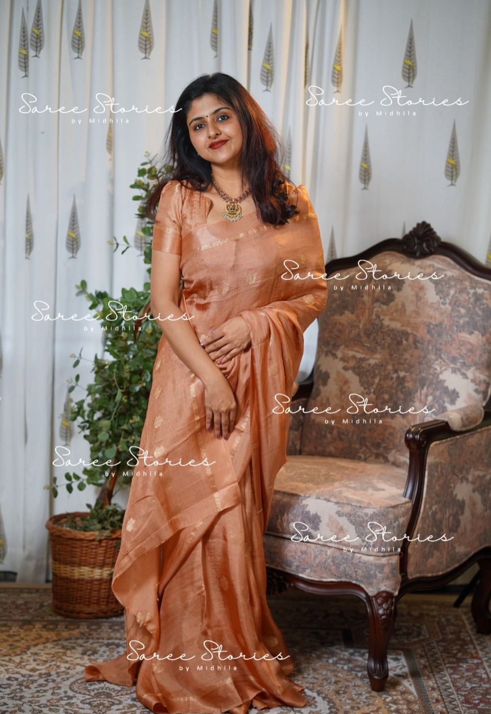 PURE VISCOSE JUTE KHAADI WITH STAIN PATTA BORDER WITH ALL OVER JACQUARD FLOWER BUTTA WITH BLOUSE (Saree L-5.15 m,Saree W -1.20 m,Blouse-90cm )
