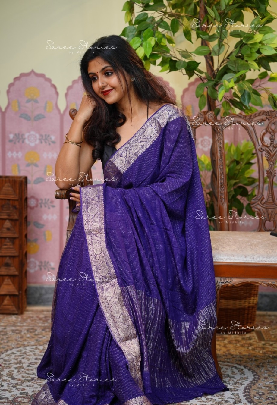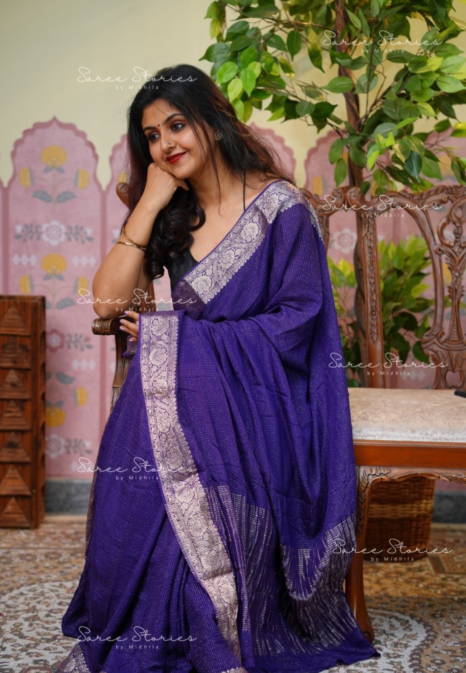 PURE CHINNON VISCOSE SAREE WITH BEAUTIFUL JACQUARD BORDER WITH CHINNON VISCOSE BUTTI BLOUSE MATERIAL
